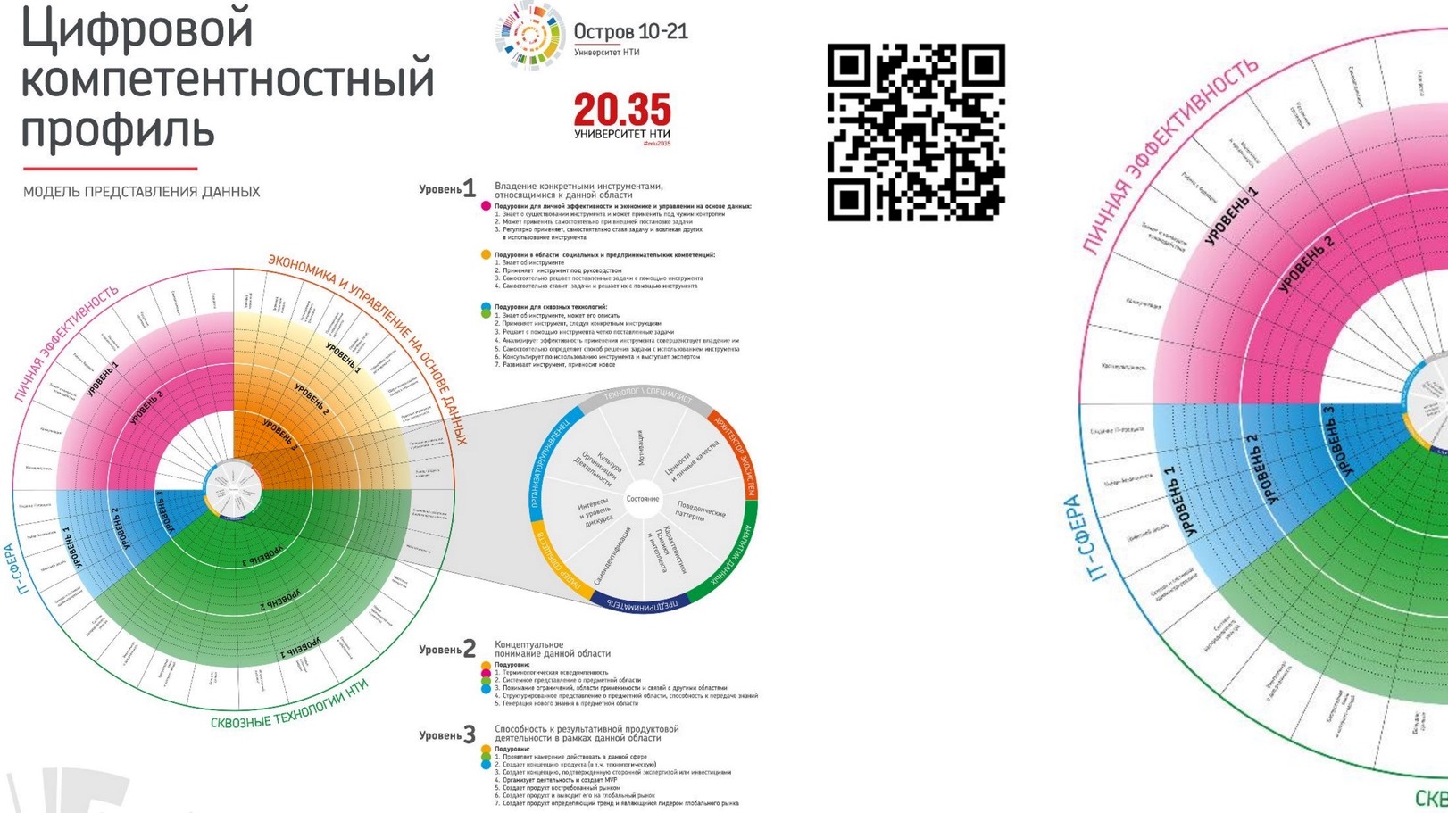 Главными критериями оценки в этом профиле является «личная эффективность» индивида, его способность «управлению на основе данных». Также очень важным критерием эффективности индивида становится его способность «внедрять сквозные технологии НТИ». АНО «Национальная технологическая инициатива-2035» с одноименным «университетом» - детище основателя «Агентства стратегических инициатив» Дмитрия Пескова. Это важно, потому что вся эта страница презентации г-на Комиссарова есть калька с проекта НТИ «Остров 10-21», который «Катюша» не раз разбирала в своих материалах.
